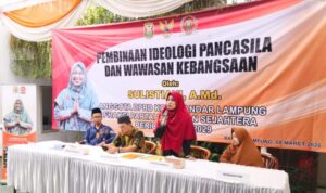 Bandarlampung, Baraindonesia.com – Anggota DPRD Kota Bandarlampung, Agus Purwanto, menggelar kegiatan Pembinaan Ideologi Pancasila dan Wawasan Kebangsaan (PIP WK) di Kelurahan Beringin Jaya, Kecamatan Kemiling.