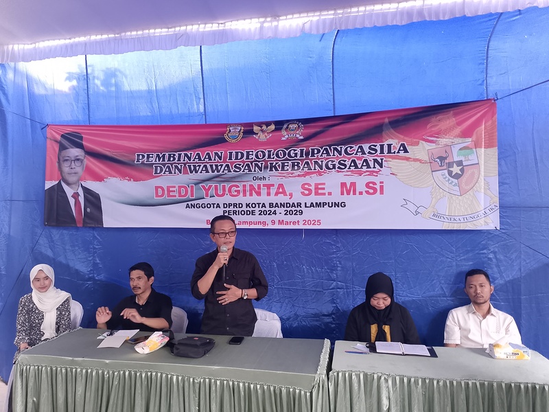 Bandarlampung, Baraindonesia.com – Anggota Komisi III DPRD Kota Bandarlampung dari Fraksi PDI Perjuangan, Dedi Yuginta, menggelar kegiatan Pembinaan Ideologi Pancasila dan Wawasan Kebangsaan (PIP-WK) di Kota Baru, Tanjungkarang Timur, Bandarlampung, pada Minggu (9/3/2025).