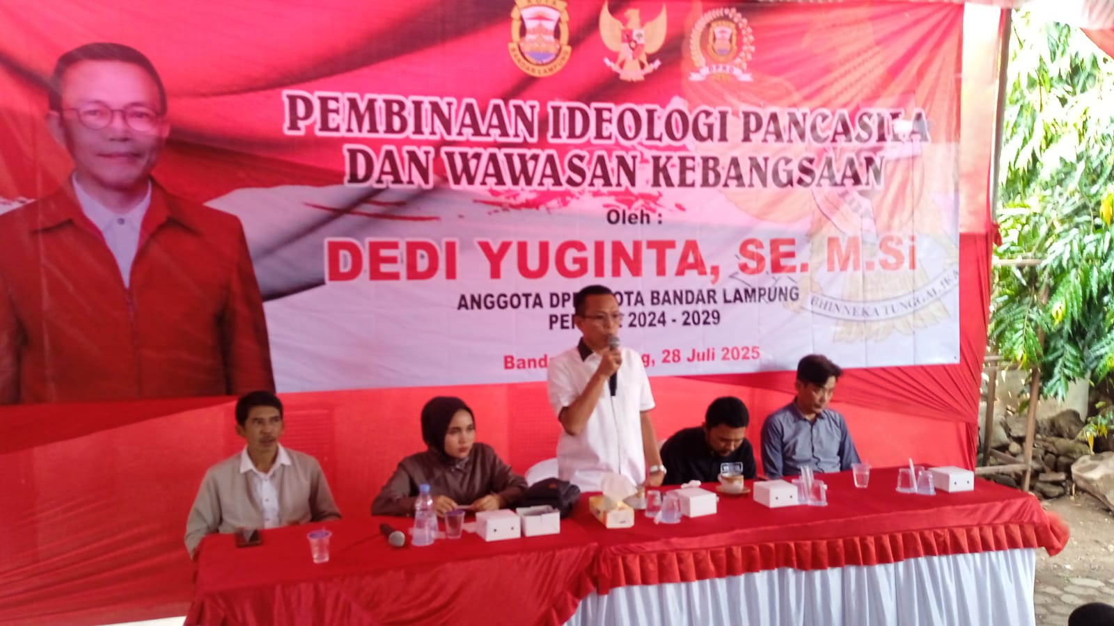 Penegasan ini disampaikan oleh anggota DPRD Bandar Lampung dari Fraksi PDI Perjuangan, Dedi Yuginta, saat menggelar kegiatan Pembinaan Ideologi Pancasila dan Wawasan Kebangsaan (PIP-WK) di wilayah Jalan Nakip, Kota Baru, Kecamatan Tanjungkarang Timur, Senin (28/7/2025).