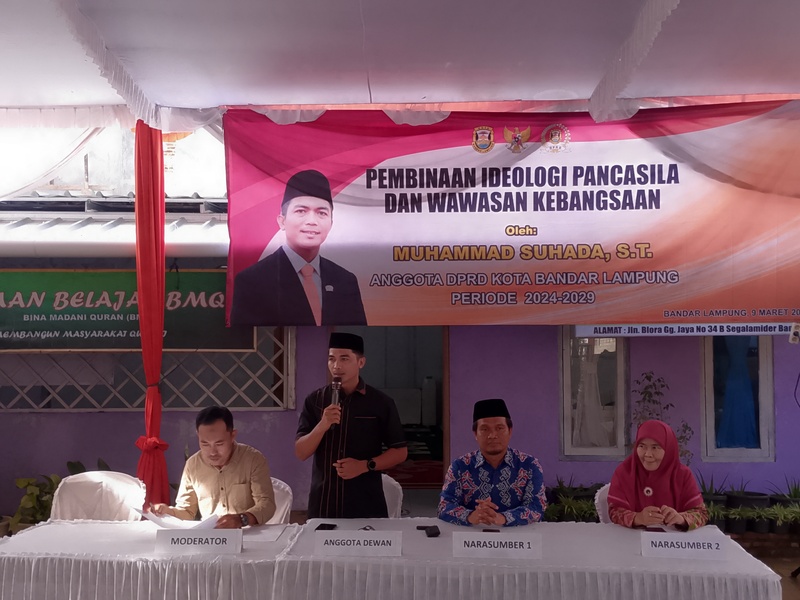 Bandarlampung, Baraindonesia.com – Anggota Komisi IV DPRD Kota Bandarlampung dari Fraksi PKS, Muhammad Suhada, menggelar kegiatan Pembinaan Ideologi Pancasila dan Wawasan Kebangsaan (PIP-WK) di Kelurahan Segalamider, Kecamatan Tanjungkarang Barat, Minggu (9/3/2025).
