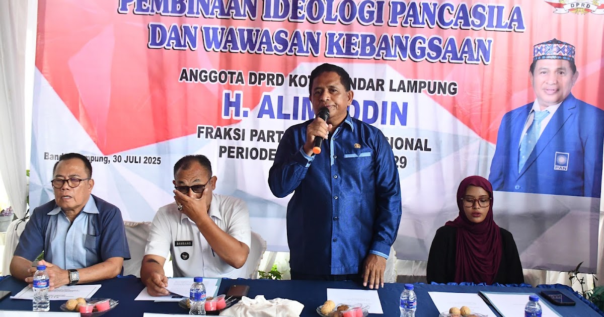 BARAINDONESIA.COM — Anggota DPRD Kota Bandar Lampung, H. Alimuddin, menegaskan pentingnya cinta tanah air sebagai wujud nyata dari nilai-nilai Pancasila dalam menjaga persatuan dan berkontribusi pada pembangunan nasional. Pernyataan tersebut disampaikan dalam agenda sosialisasi Pembinaan Ideologi Pancasila dan Wawasan Kebangsaan (IP-WK) yang digelar di Kelurahan Kota Karang, Kecamatan Teluk Betung Timur (TBT), Rabu (30/7/2025).